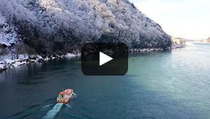 長さ・流域面積ともに国内有数の大河・阿賀野川。両岸に広がる美しい景色を堪能できる遊覧船が通年で運行されている。
