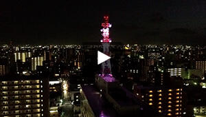 このほどビルの屋上にある鉄塔のライトアップが始まりました。