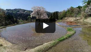 国内有数の豪雪地である魚沼市の福山地区は、冬の間に降り積もった雪が解けきる前に桜の開花を迎えることがあり、
