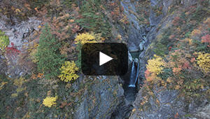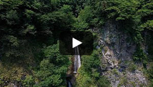 糸魚川市の姫川沿いを長野方面へ進んだ山間に位置する不動滝は、高さ70mの3段に流れ落ちる壮大な滝。滝つぼの目前の大岩の上には水神社が祀られている他、