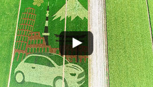 15回目を迎えた田んぼアート。今年はイタリアの自動車メーカーとのコラボレーションです。日本とイタリアを象徴する建造物などがデザインされました。