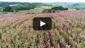 100万本のピンクや白のコスモスが絨毯のように広がり、そのグラデーションが美しいです。