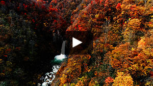 「日本の滝百選」に選ばれている名瀑(めいばく)である苗名滝。錦繍に染まる山、激しく流れ落ちる水、柱状節理の玄武岩壁、そのコントラストが絵画のように美しいです。