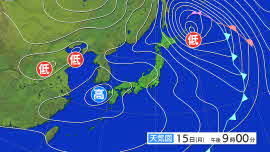 新潟県内はあす15日未明にかけて暴風に警戒 下越・佐渡では15日昼前にかけて高波にも警戒【今後の雨・雪と風のシミュレーション・14日午後7時更新】
