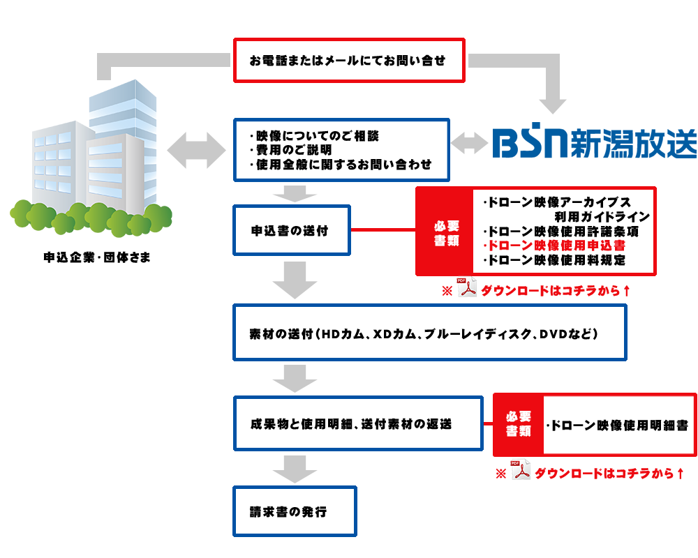 その上で、提供を希望される映像素材の内容については、BSN新潟放送までご相談ください。