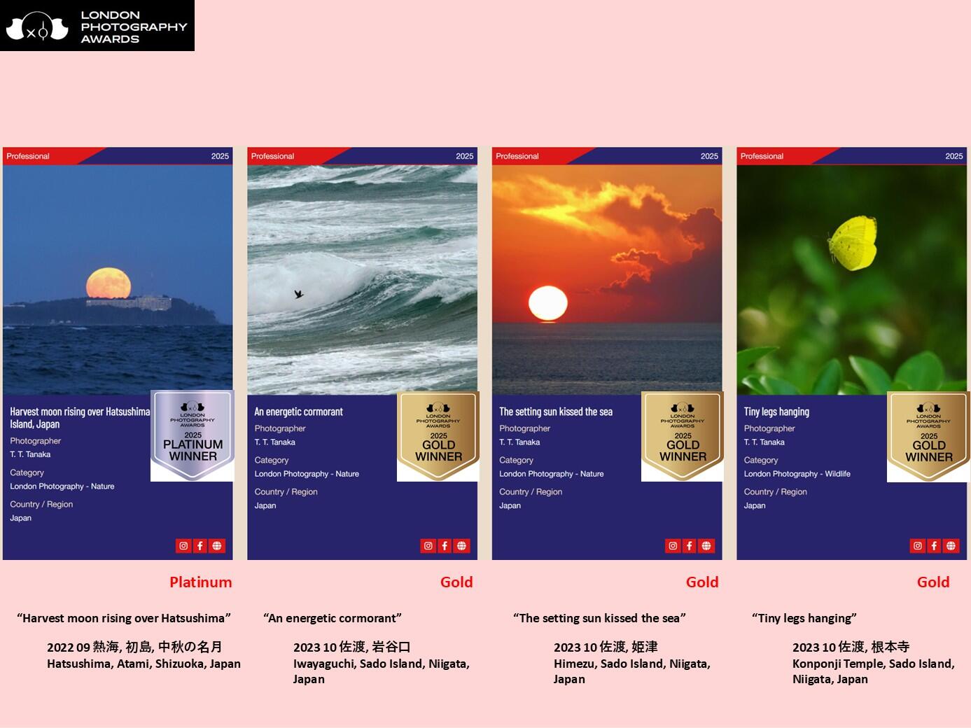 国際写真コンテスト London Photography Awards にてPlatinum winner 1点含め9点をprofessionalとして受賞されました。おめでとうございます!