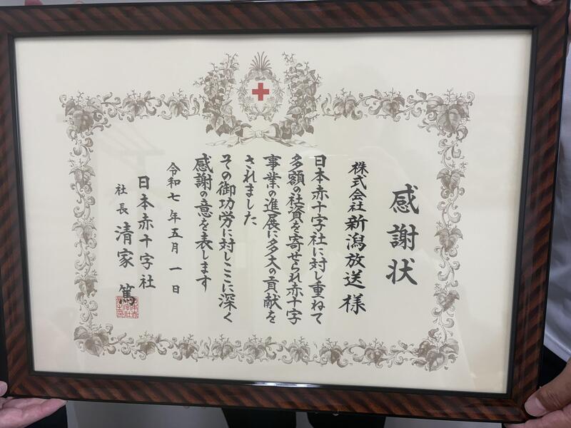 皆さまから頂戴した「BSN愛の募金」、そしてBSN新潟放送からの活動資金を合わせて、長年の貢献に感謝状を頂きました!