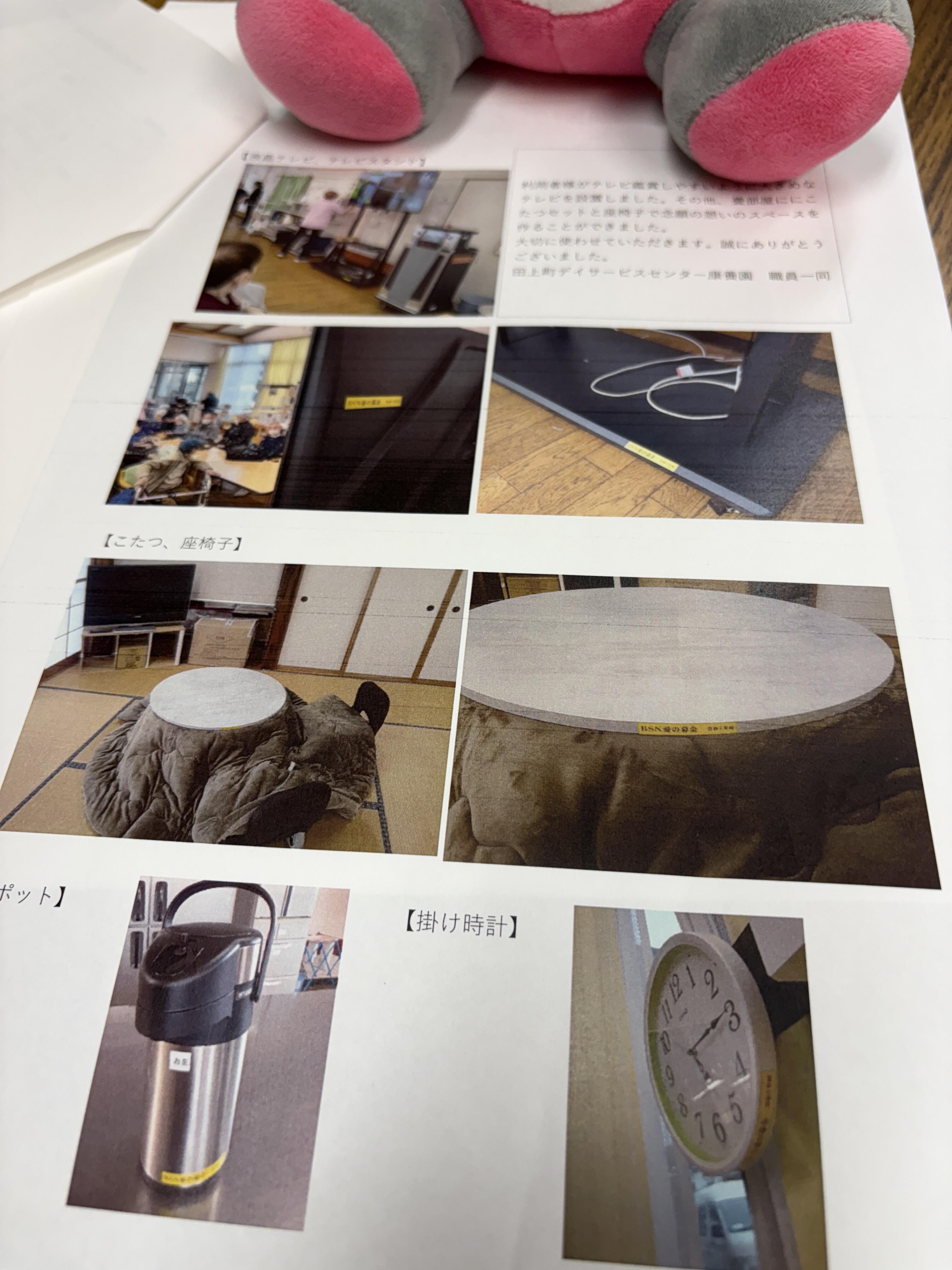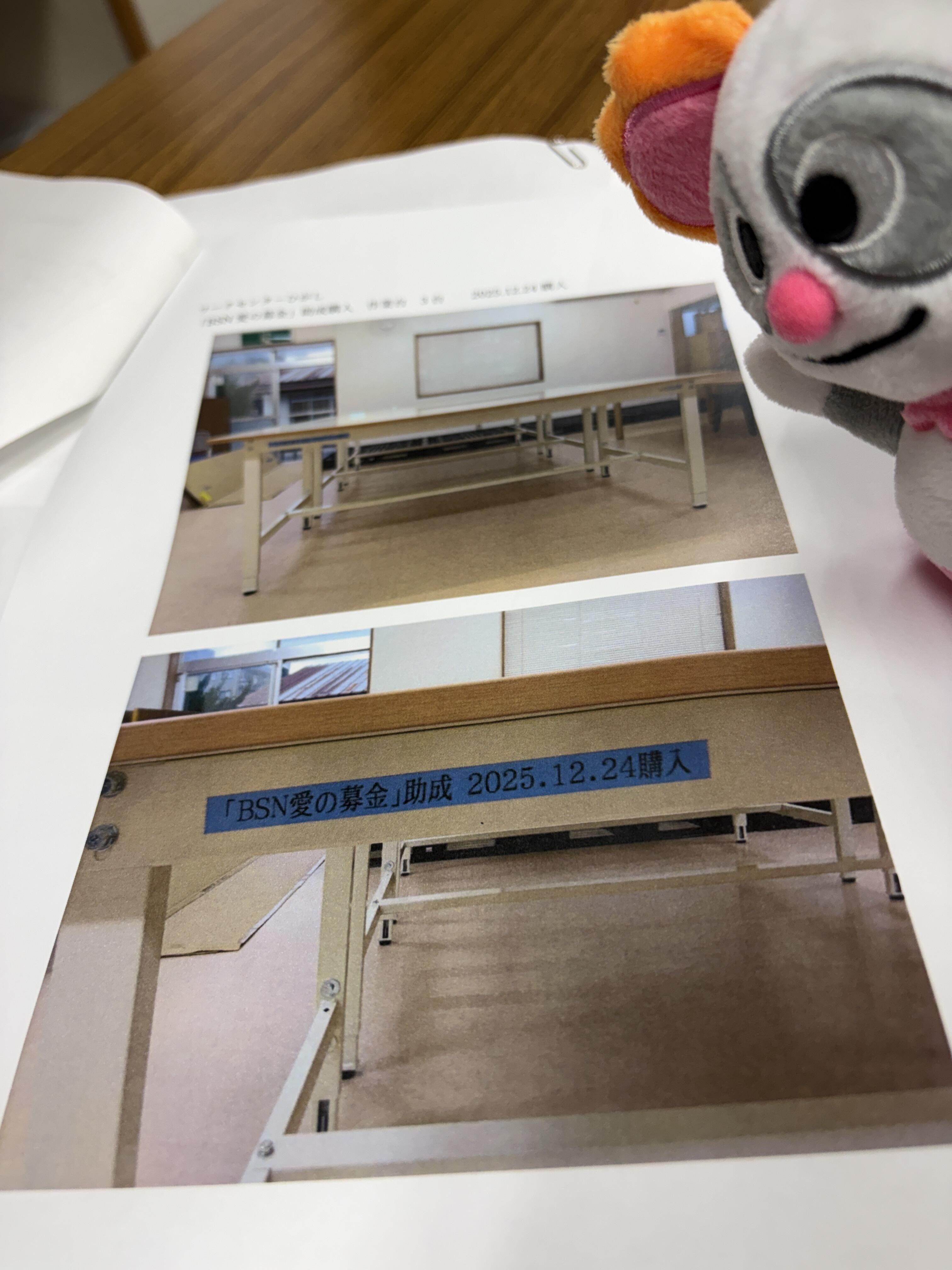 購入した備品等には、「BSN愛の募金」とわかるようにして頂いています。