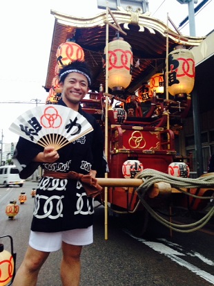 私の後方に映っている、町内6つの組ごとに持つ台輪を