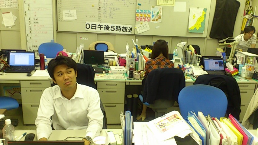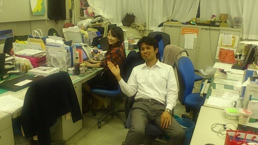 私は、新海さんとアナウンス部での座席配置がおおよそ背中合わせ。