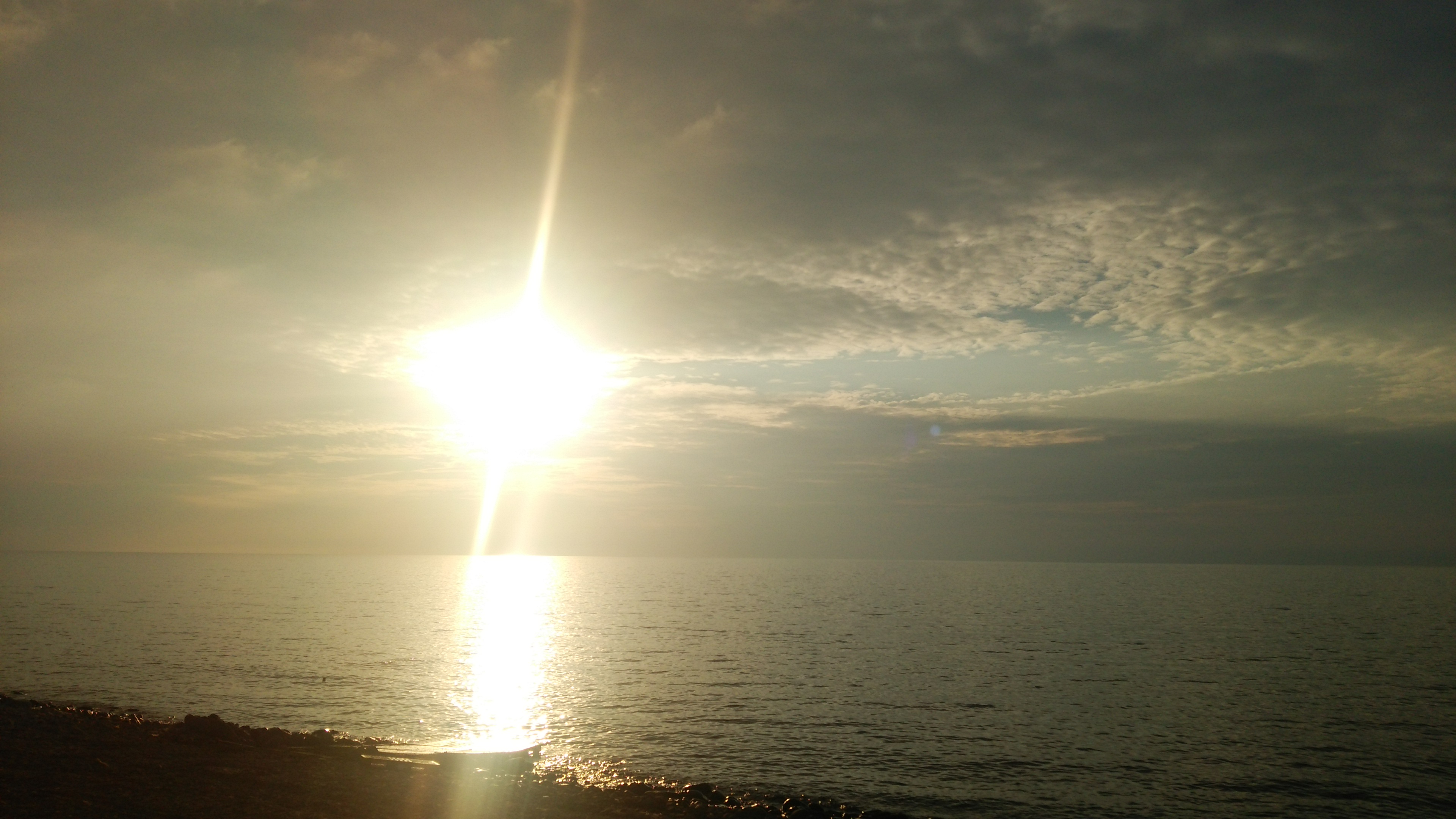 とにかく、夕日を浴びてこの海原へ出るゼ![]()