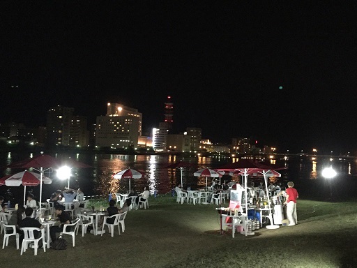 心地の良い風を感じながら屋外で夜空を眺めながら飲食する。