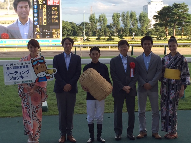 この夏の新潟開催の間に、この新潟競馬場で最も多く勝利をあげたジョッキーの表彰です。