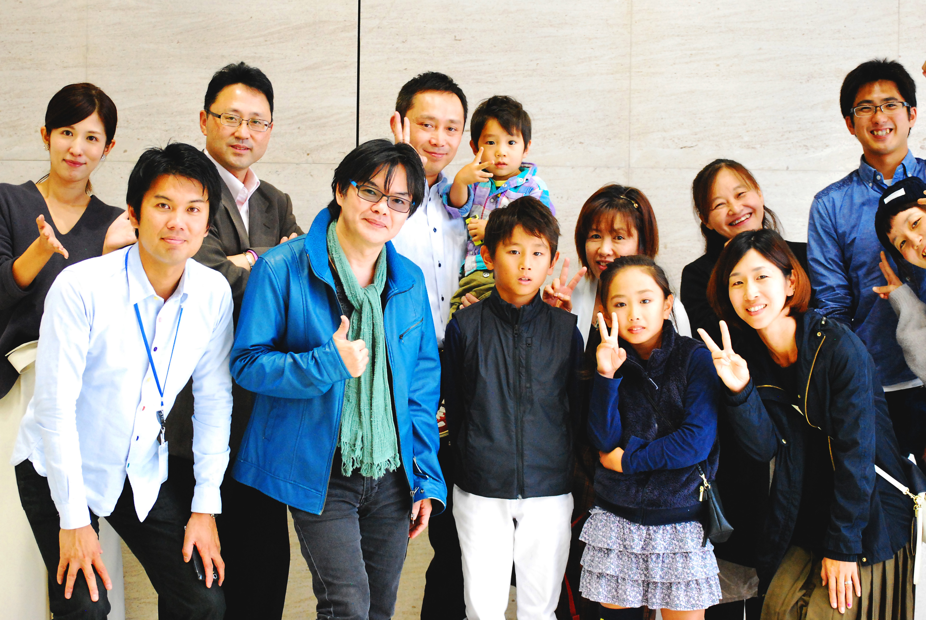 平田さんの後ろで、小さな男の子と一緒にVサインをしていらっしゃるのが、
