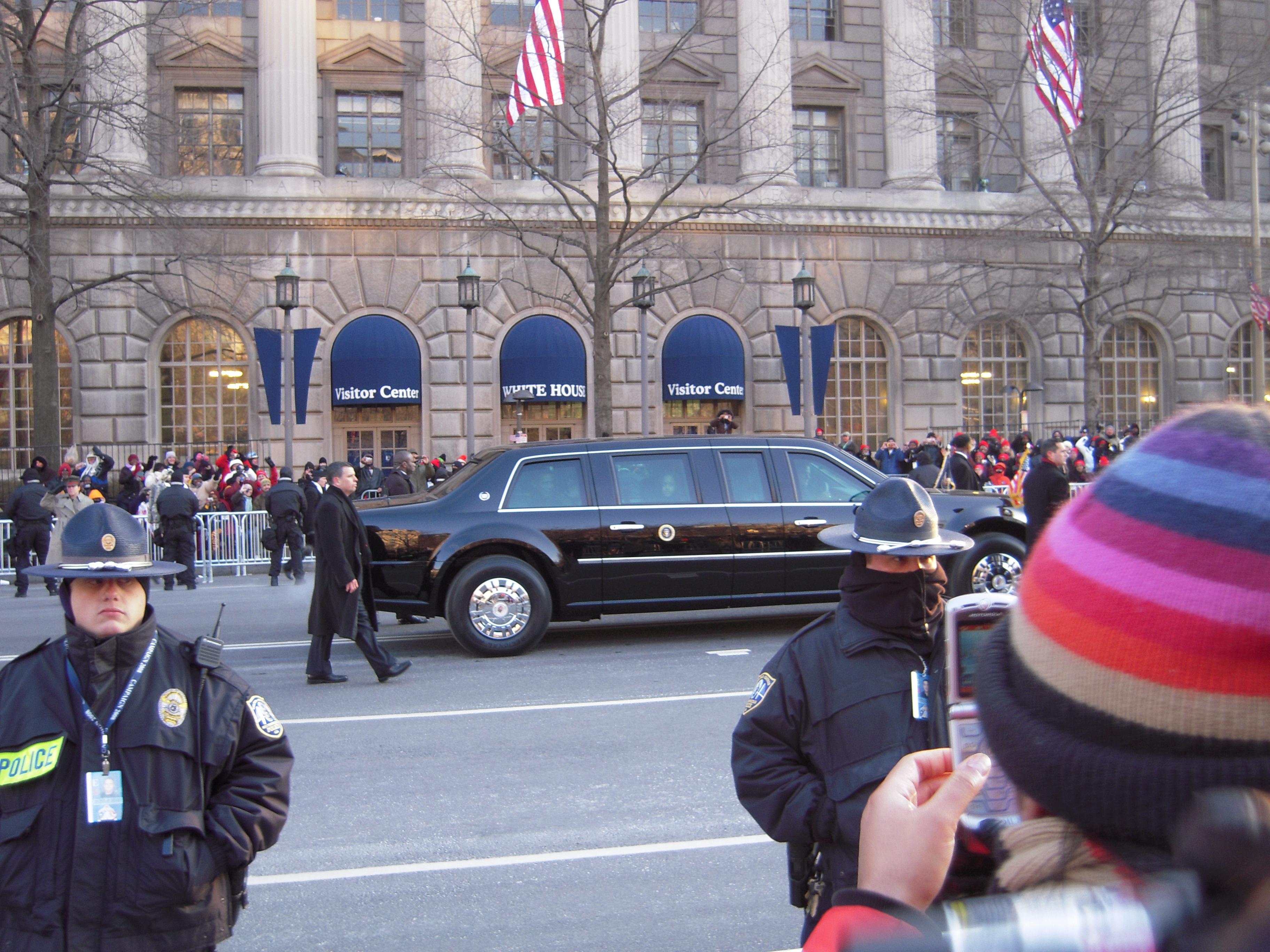 (最後部座席にオバマ大統領を乗せたリムジンが登場)