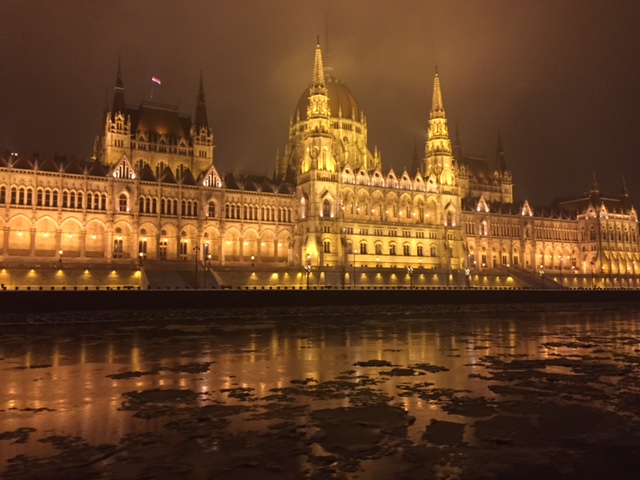 今回見た風景で最も美しかったのが、ハンガリーブダペストの国会議事堂の夜景。