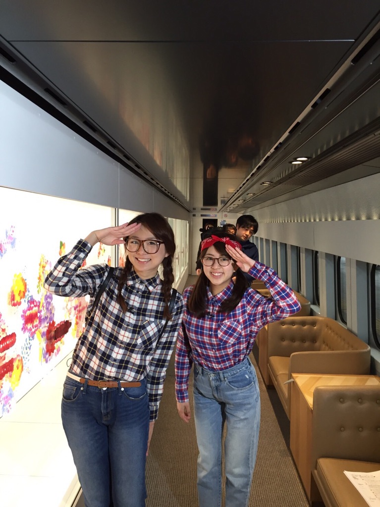 取材で、芸術鑑賞ができる現美新幹線に乗ったり