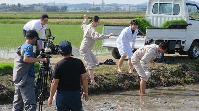 先週金曜日の撮影では第3話の撮影が行われていましたが、田植えのシーンのびっくり?