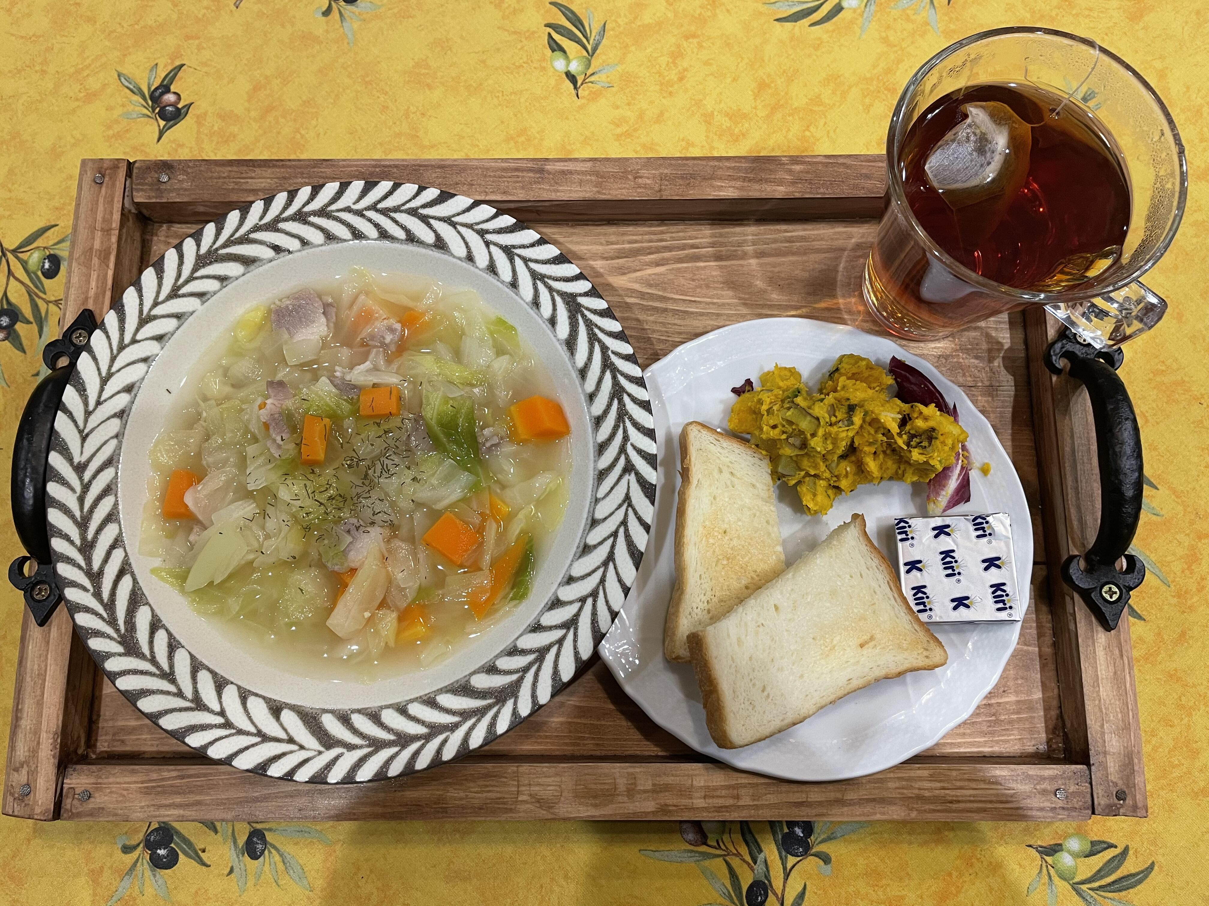 先日、お肉屋さんで美味しいベーコンをゲットしたので、野菜スープを作りました!