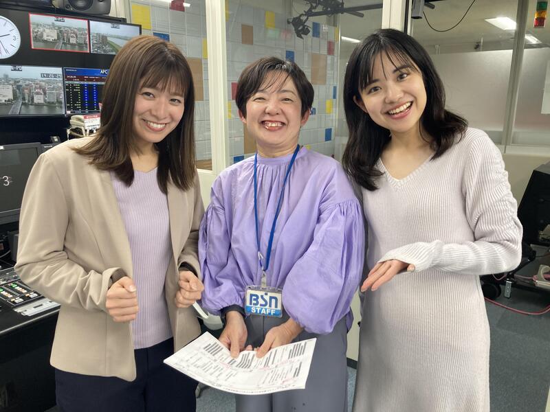 ひとりで映る勇気がなく、私に巻き込まれた大塩アナと近藤アナ。3人ともOA直前まで、ほぼすっぴん派です。