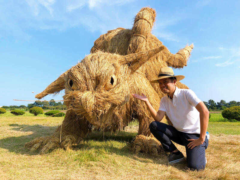 地元の方々も参加して「稲わら」で制作したオブジェが出現です!