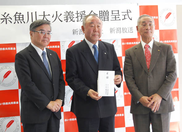 新潟放送と新潟日報社が共同で呼びかけた「糸魚川大火義援金」に、たくさんのご協力をいただき、誠に有難うございました。