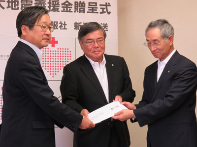 日本赤十字社 新潟県支部にて義援金目録を手渡す
