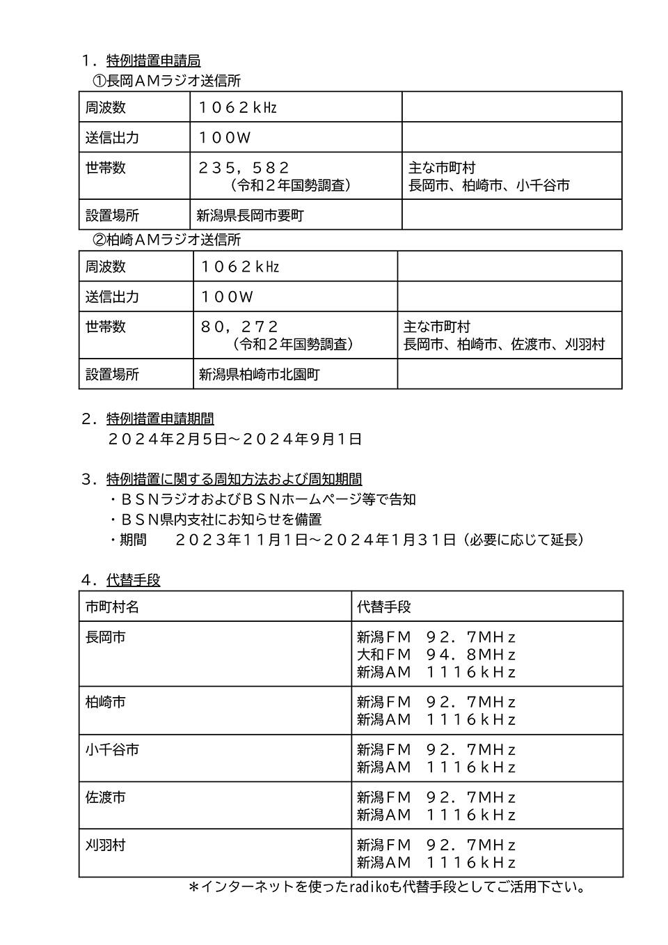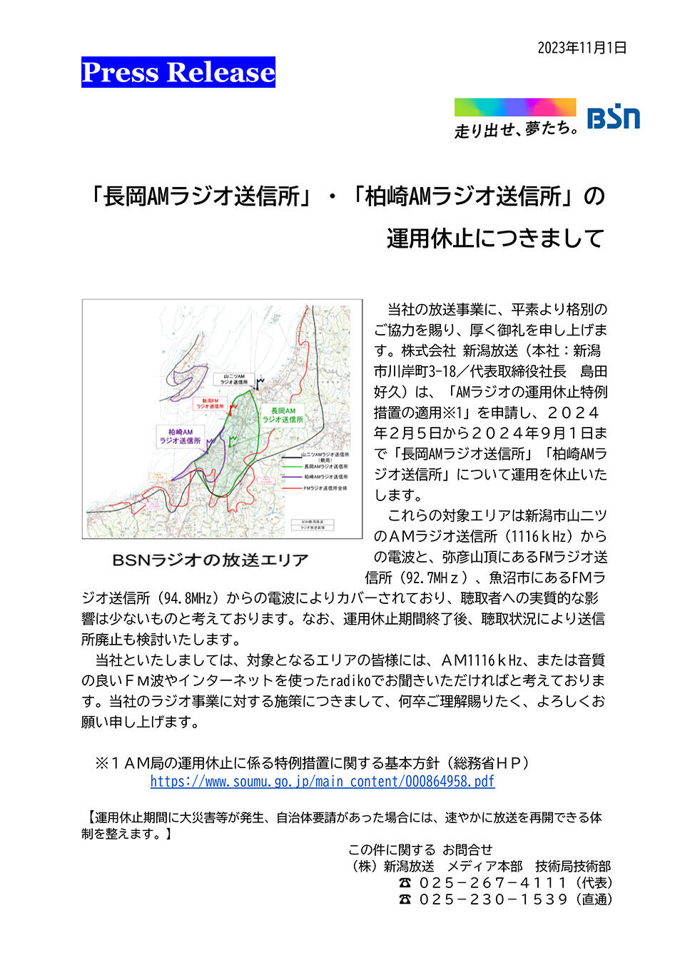 「長岡AMラジオ送信所」・「柏崎AMラジオ送信所」の 運用休止につきまして