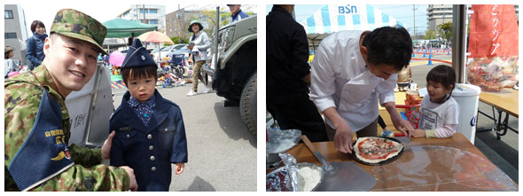 自衛隊になりきれる試着体験や本場仕込みのピッツァを焼けちゃう、手作り体験。