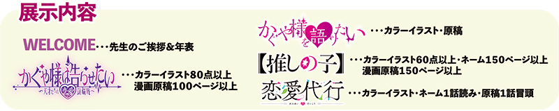 カラーイラスト、漫画原稿、ネームなどの資料を一堂に展示した赤坂アカ初の漫画展。