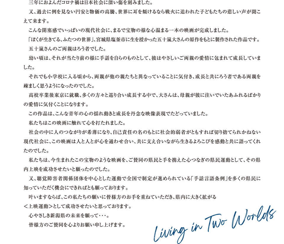 映画「ぼくが生きてる、ふたつの世界」新潟県上映をひろめる会