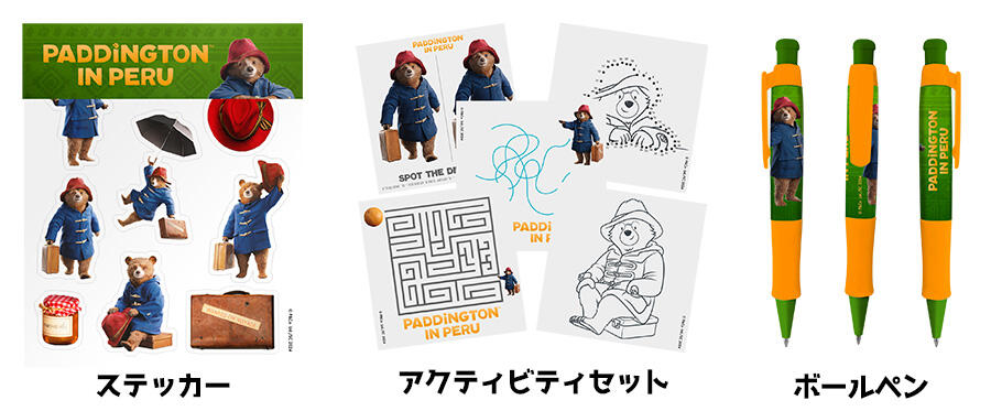 この映画のオリジナルグッズ(ステッカー、アクティビティセット、ボールペン)を