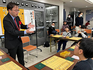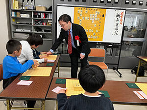 憧れのプロ棋士と対局できる貴重な機会に、子どもたちは目を輝かせながら、