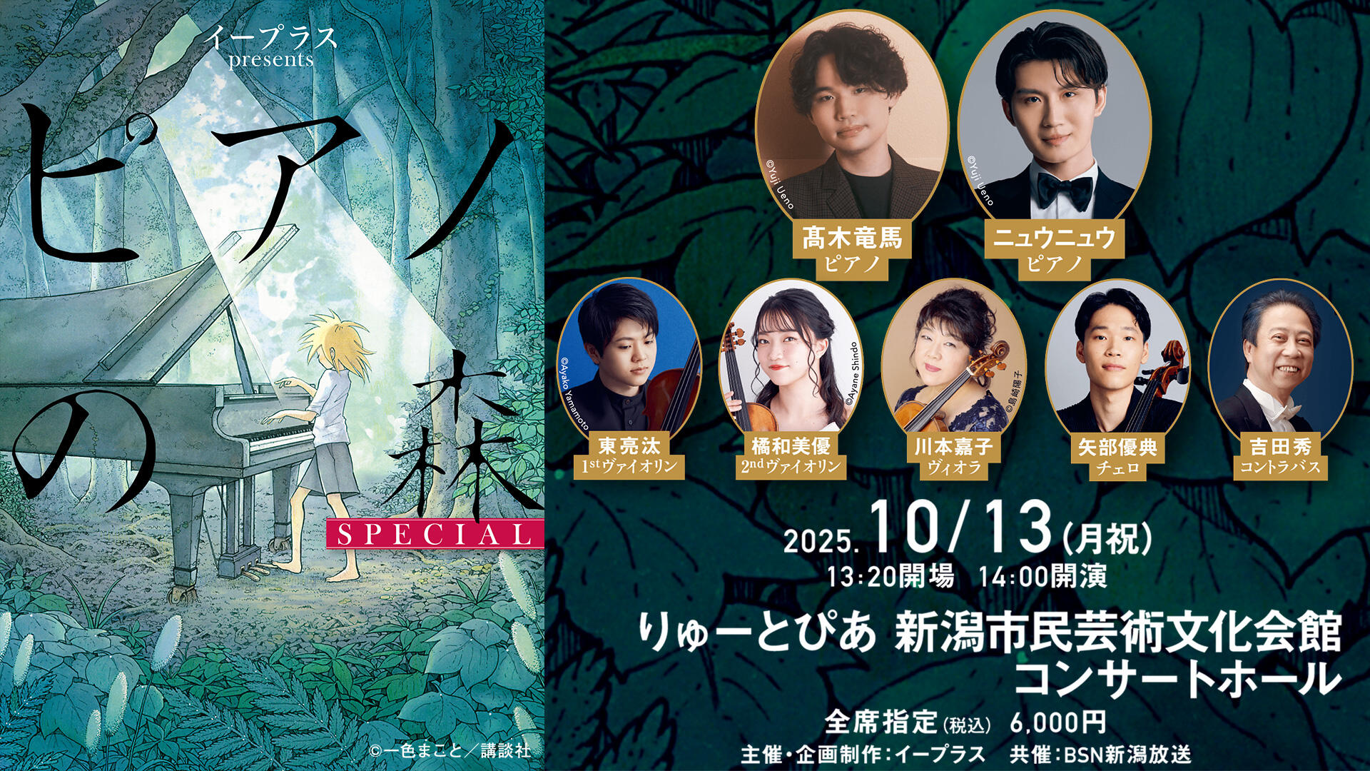 TVアニメ『ピアノの森』の雨宮修平とパン・ウェイの演奏を担当した実力派ピアニスト、髙木竜馬とニュウニュウが共演。