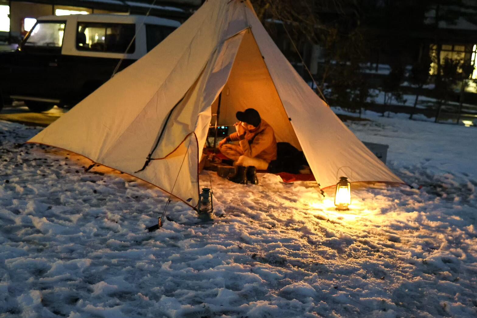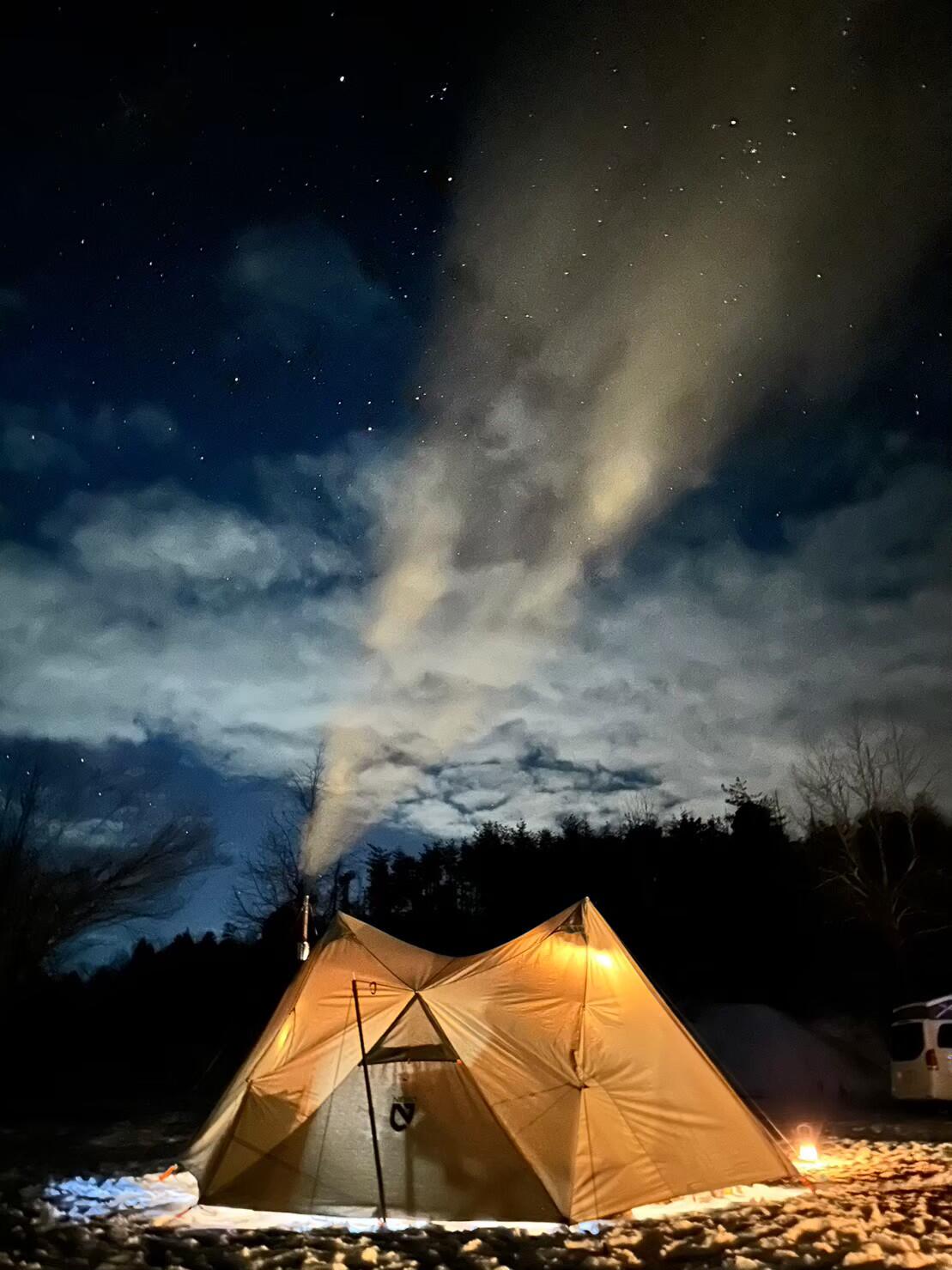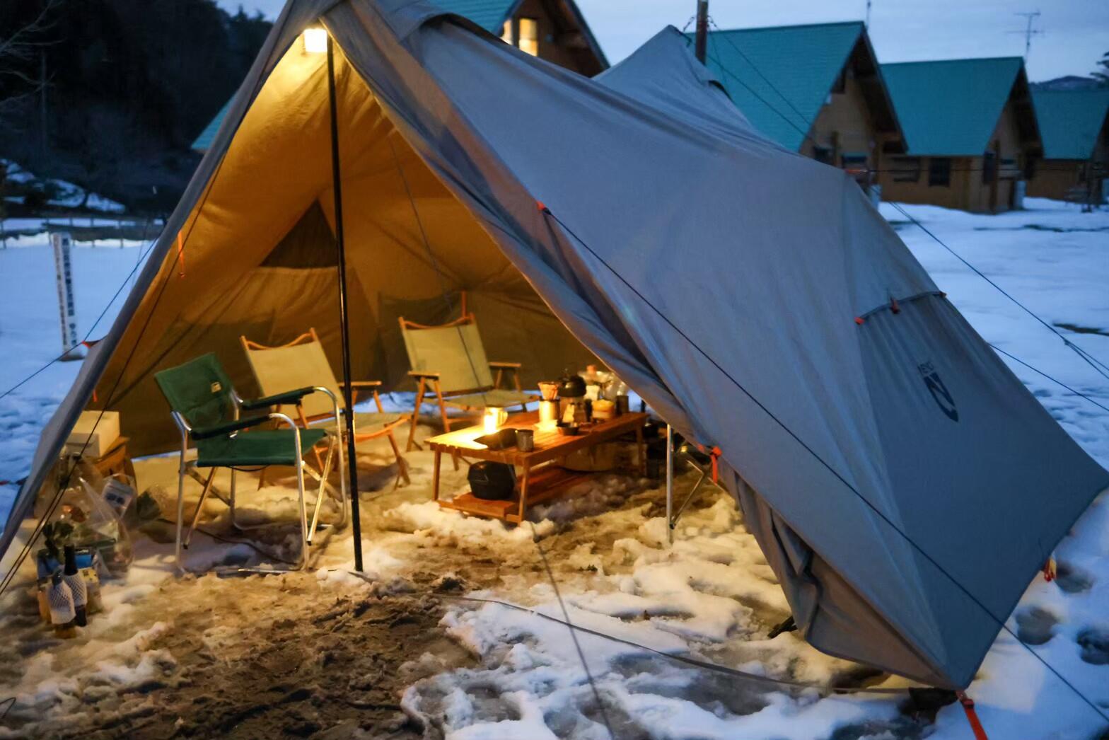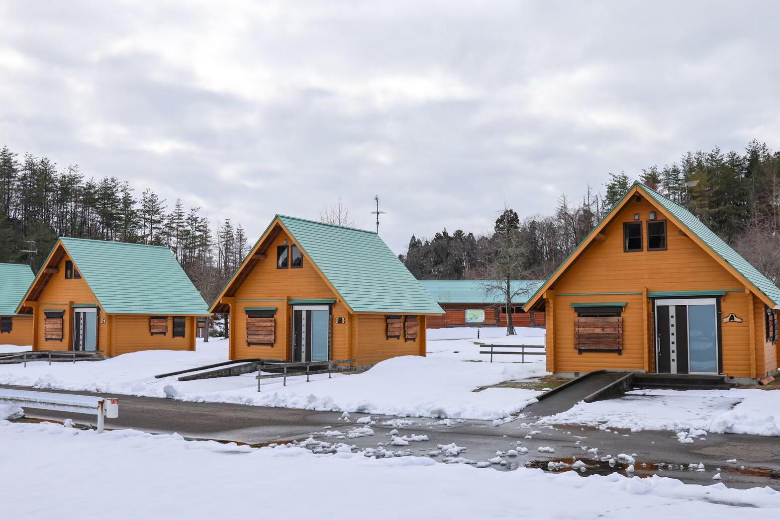 冬のテント泊が不安な方には、数量限定でログキャビン(コテージ)の予約も可能。