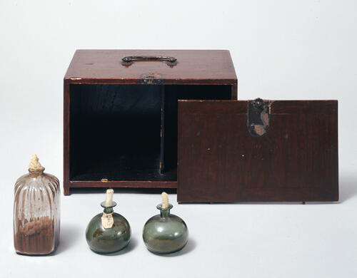 びいどろ薬壺 附 溜塗倹飥蓋造手箪笥