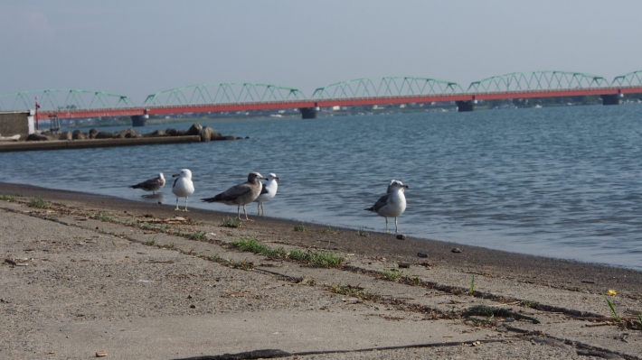 新潟空港に着陸する飛行機を目当てに阿賀野川河口に。人に慣れているのか、初夏の穏やかな陽の光で羽を休めてる姿がほのぼのと。