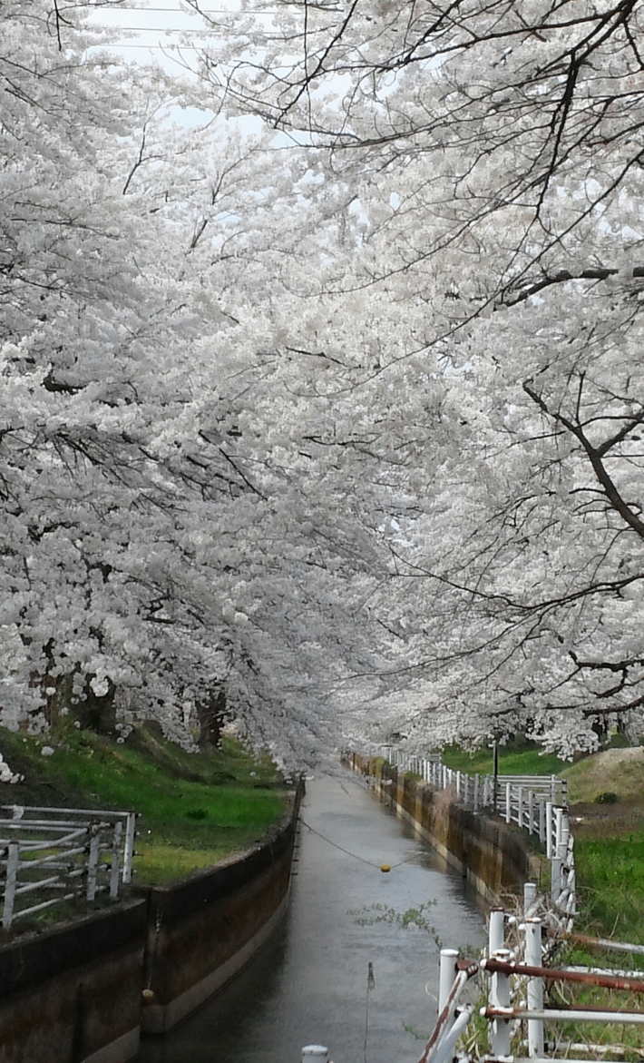 阿賀野市の桜の名所、土日の賑わいも平日は独り占め。用水路の両岸に数キロに渡る桜並木は見事!