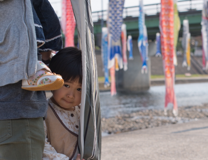 ここ3年 加茂川の鯉のぼり撮影に行っています。この日は朝早くて人出も少なく、風吹かず、、でしたが かわいいモデルさんに会えました。