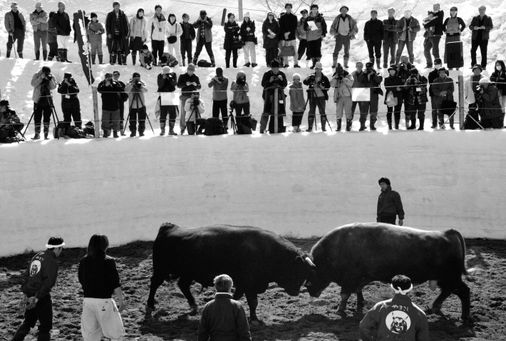毎年山古志で行われる古志の火まつりのイベント「雪中闘牛」です。