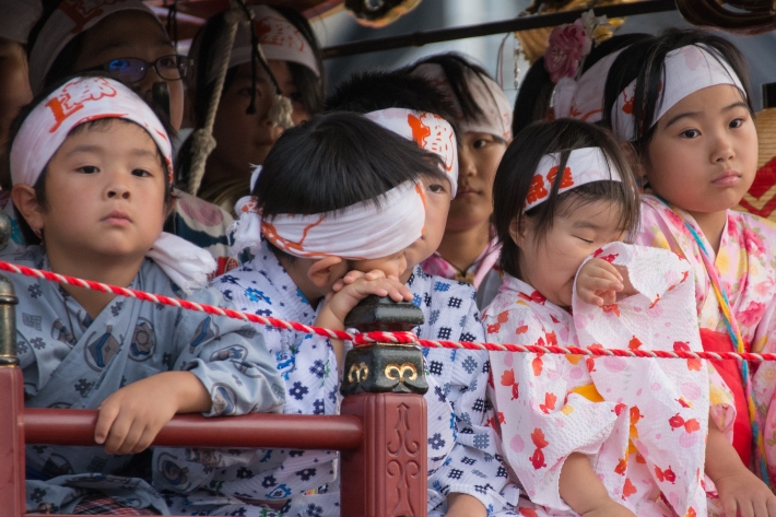 村上大祭の前夜祭に 行って おしゃぎりが 練り歩くのを初めて見ました。子供も頑張っていましたが、眠そうな子も多かったです