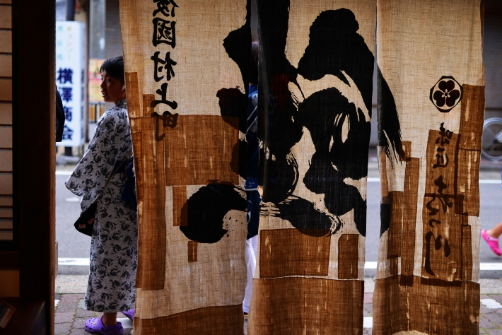 JR東日本のポスターでも 有名になったお店。 ちょうど村上大祭の日にお邪魔して 内側より 浴衣の子を撮らせていただきました。