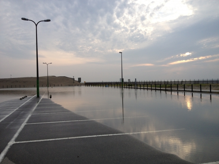 雨上がりに小針浜に行った時の景色がきれいだったので撮影しました。 駐車場が幻想的に見えました。