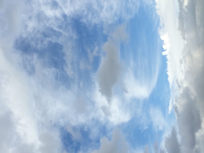 曇り空と青空の中央に狼が現れたので撮影しました。