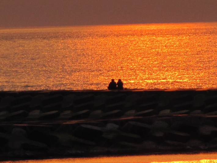 夕日を眺める二人。 きっと「このまま時間が止まってくれたら...。」と思っているでしょう。