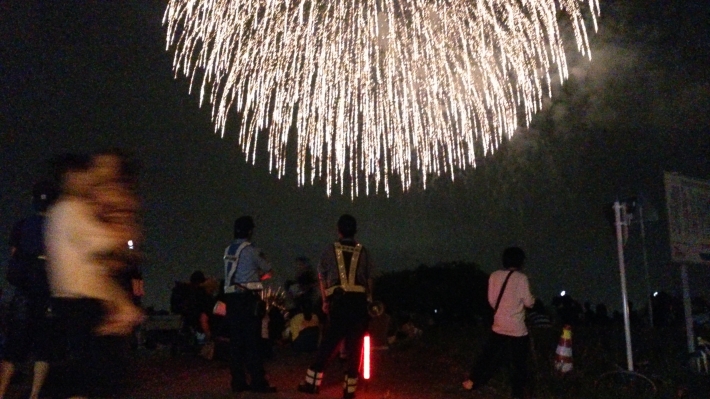 雨が最後まで降らず、今年もござれや花火を見れて良かったです。「アナと雪の女王」 の曲がかかると、周りの子供達が一斉に歌い出し、大合唱。花火にもこちらにも大きな拍手。