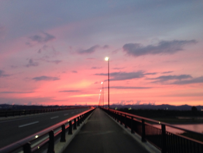 仕事帰りの ランニングが日課になっています。フェニックス大橋で〜綺麗な綺麗な夕焼けランニング途中の1枚です‼︎