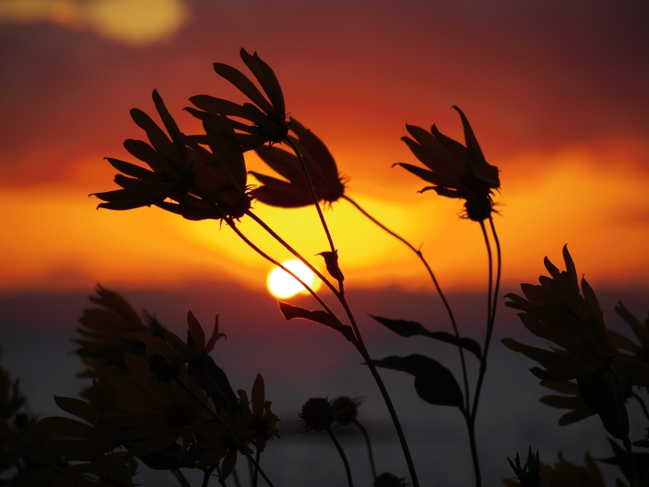 夕暮れの浜辺。秋風になびくゴールドコイン。