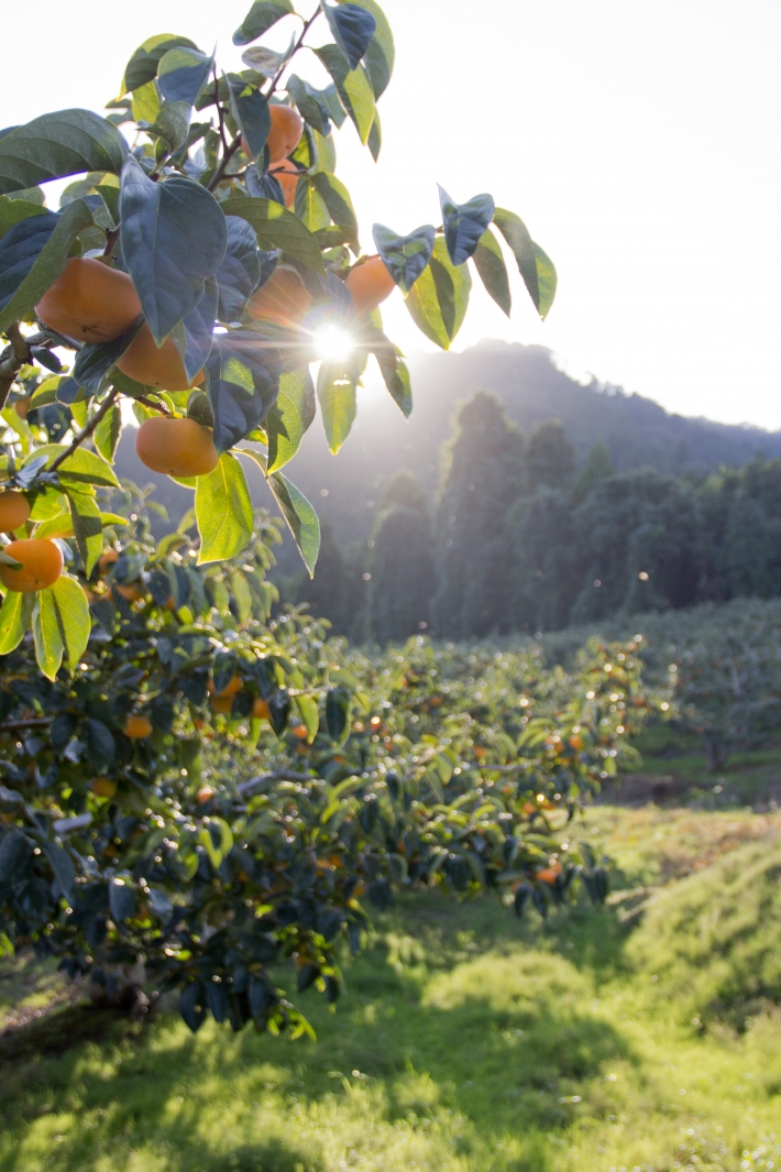 少しずつ柿の実が色づいていく風景は、越王の秋の風物詩の1つです。