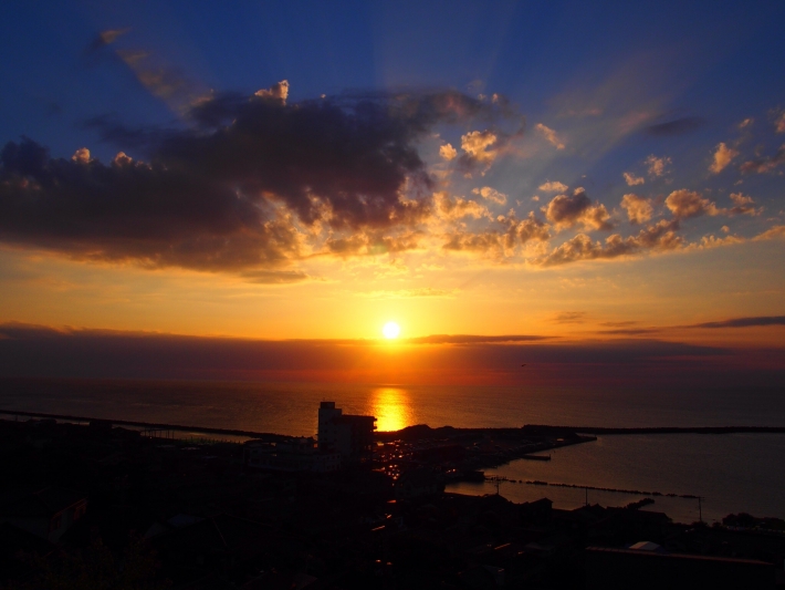 高台に登ったら綺麗な夕陽が見えました。